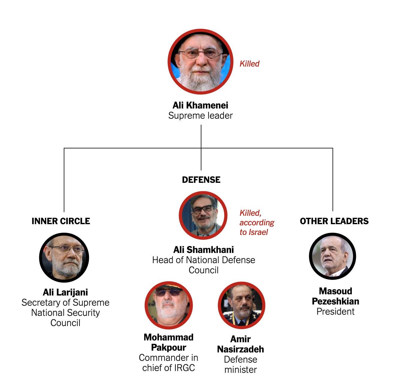 Insieme a Khamenei, l’operazione ha decapitato gran parte del vertice militare e di sicurezza iraniano. L’esercito israeliano ha rivendicato la morte di sette alti funzionari: il generale Mohammad Pakpour, comandante in capo delle Guardie della Rivoluzione, il ministro della Difesa Aziz Nasirzadeh, l’ammiraglio Ali Shamkhani, segretario del Consiglio di difesa e fidato consigliere di Khamenei, il generale Abdolrahim Mousavi, capo di stato maggiore delle forze armate, e altri comandanti di primo piano. Fonti dell’intelligence americana e israeliana hanno riferito alla BBC, tramite il suo partner americano CBS, che nell’operazione sono morti circa 40 funzionari iraniani. Secondo il New York Times, nelle ore successive all’attacco al complesso di leadership, Israele ha colpito anche le strutture dove si trovavano i vertici dell’intelligence iraniana: il responsabile dei servizi segreti è riuscito a sfuggire, ma i ranghi alti dell’intelligence sono stati decimati.