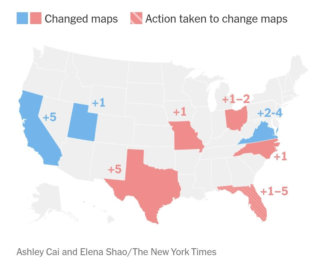 Per comprendere fino in fondo il significato del voto in Virginia, è necessario allargare lo sguardo. Quello a cui si sta assistendo negli Stati Uniti non è una sequenza di episodi isolati, ma uno dei più ampi cicli di redistricting “fuori calendario” della storia recente. Tradizionalmente, infatti, i confini elettorali vengono ridisegnati una volta ogni dieci anni, dopo il censimento. Il fatto che numerosi stati stiano intervenendo a metà ciclo elettorale rappresenta una rottura significativa rispetto a questa prassi consolidata.