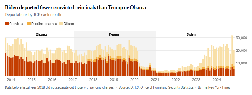 Durante gli ultimi quattro anni, infatti, le pratiche di espulsione sono state superiori rispetto al periodo di Trump. L'amministrazione Biden ha portato a termine 4 milioni di trasferimenti grazie all’ampliamento dei poteri d’emergenza Covid, utilizzando in particolare il Title 42, che consentiva il rientro immediato dei migranti fermati al confine. Tuttavia, questa misura ha generato un effetto distorsivo, poiché molti individui espulsi hanno tentato ripetutamente di varcare di nuovo la frontiera, con il tasso di recidiva degli arresti salito al 30% nel 2021. Al contrario, Trump ha effettuato solo 1,9 milioni di rimpatri nel suo primo mandato, rallentando le operazioni rispetto all’epoca Obama e concentrandosi in misura maggiore sui trasferimenti interni.